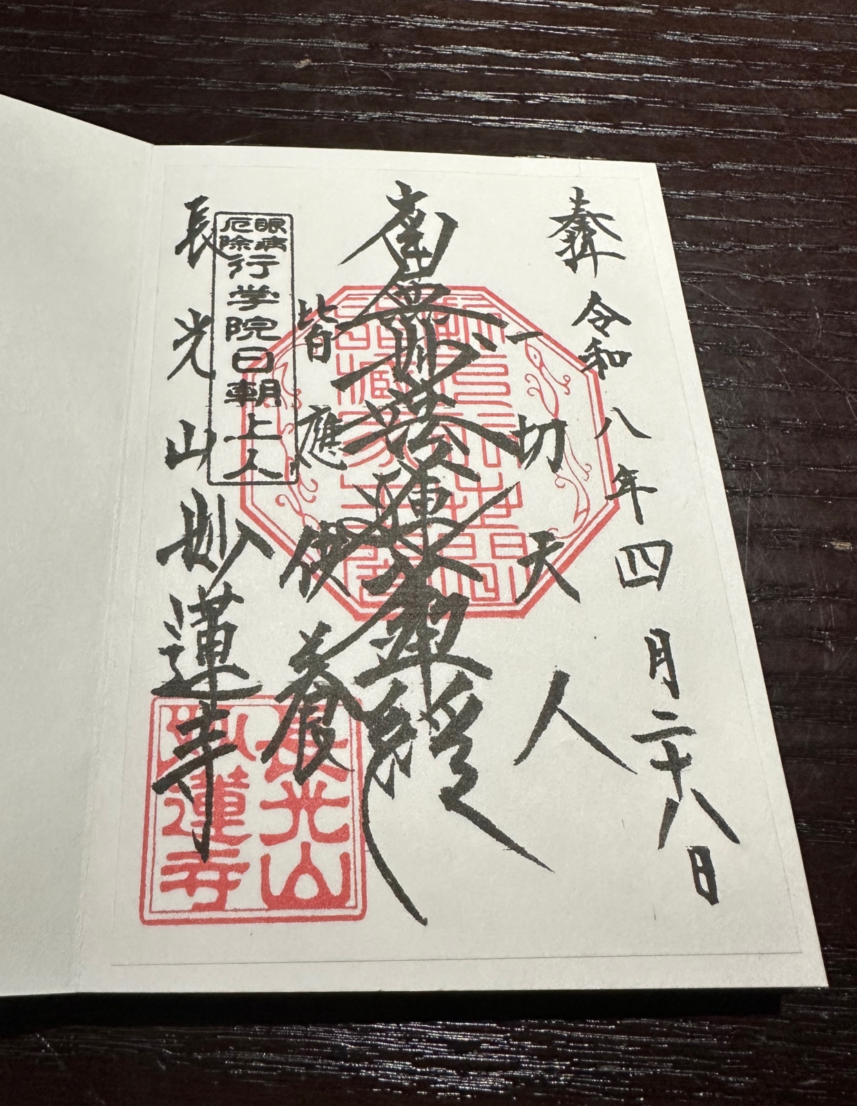 御朱印 久しぶりに日蓮宗の御主題をいただいてきました。日蓮宗の御朱印帳は他の宗派や神社とは別にした方が良いと聞いているので、なかなか日蓮宗のお寺にお参りする機会がなくこの御朱印帳が終わるのはいつになる事やら…。